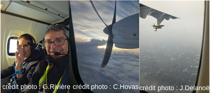 L’ATR a volé dans des vents forts, de face et de travers, au milieu de la troposphère et en basse altitude à moins de 500m au dessus d’une mer agitée. L’équipage a été un peu chahuté par les bourrasques, les mesures de turbulence in-situ seront bonnes ! L’atterrissage a été “sportif” d’après les pilotes, qui ont dûs atterrir avec une approche perpendiculaire à la piste à cause du vent !